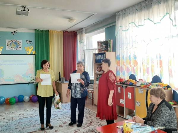 В осеннем календаре есть необычная дата, когда сердце переполняется чувством глубокой признательности, когда хочется говорить слова благодарности, быть особенно чуткими и внимательными к людям – Международный день пожилых людей, «День добра и уважения», «День преемственности поколений». Самый добрый и важный праздник не только для пожилых людей, когда им уделяют внимание, поздравляют и чествуют, вспоминают прошлые заслуги и просто благодарят за добрые дела, но и для всех других поколений. Именно в такие минуты реально чувствуется связь поколений. В рамках месячника коллектив детского сада «Ақбота» присоединились к поздравлениям и пригласили своих бывщих коллег «золотого» возраста на праздничные мероприятия. На праздничное мероприятие были приглашены и другие уважаемые гости. Председатель районного Совета ветеранов Кизавева Т.Д. вручила Благодарственные письма. Для них подготовлены были номера художественной самодеятельности нащих воспитанников. Праздничное мероприятие совпало с Днем рождения Веселовой Надежды Ивановны, человек проработавший много лет в этом детском садике и посвятивший свою жизнь воспитанию детей. В праздничный день прозвучали любимые песни присутствующих на празднике, Кульминацией праздника стало коллективная игра на детских музыкальных инструментах, а точнее, игра на шумовых инструментах. Тем самым, участники мероприятия одновременно учились, познавали, импровизировали и творчески самовыражались.